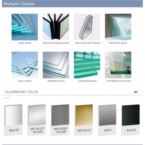 | Glass | Double glass recommend, single ,Low-e, lamilated glass as options | Customized | ||